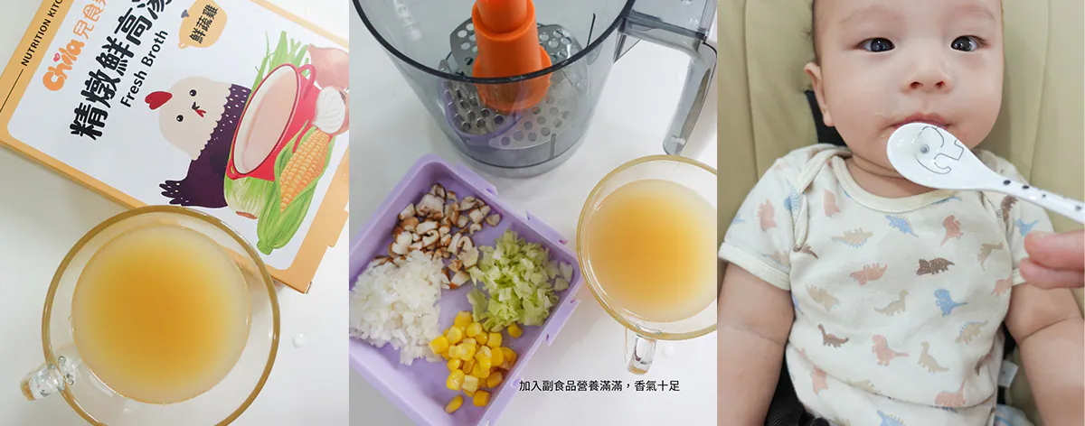 兒食樂的高湯包是常溫保存很方便,用雞肉、洋蔥、玉米、芹菜等來熬製的營養高湯。倒出來真的很純淨不油膩,製作粥加入,煮完真的很香,也發現迷你寶比較愛吃(孩子果然都懂吃)