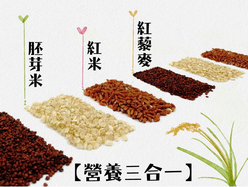 ‧ 營養三合一:紅米+胚芽米+紅藜麥