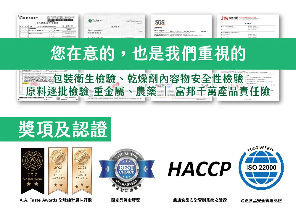 🏆 榮獲A.A純粹風味國際無添加認證 🏆️