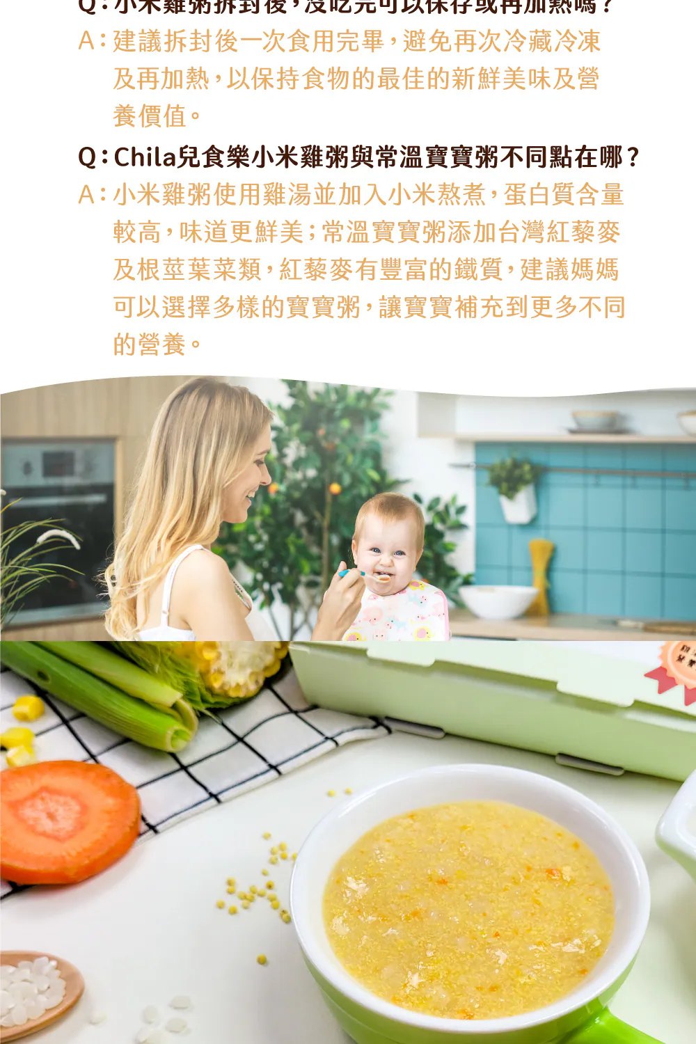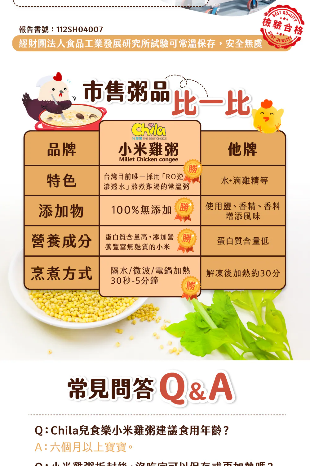 .成分:雞高湯(RO水、雞肉、洋蔥、玉米、西洋芹)、RO水、玉米、白米、雞肉、紅蘿蔔、小米
