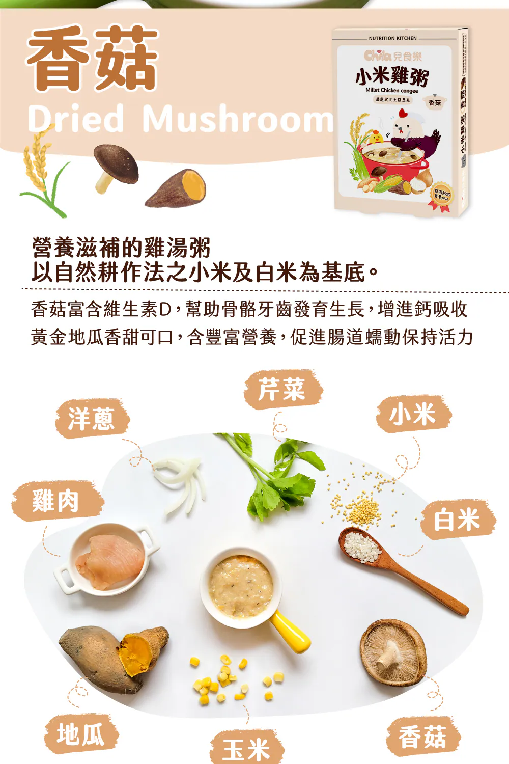 .品名:小米雞粥-香菇