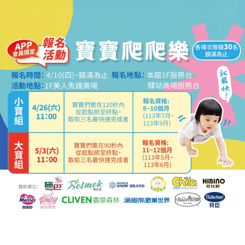 屏東的爸比媽咪們注意啦!每年屏東太平洋百貨舉辦都快速爆滿的「寶寶爬爬樂&搬搬樂」再度登場啦~