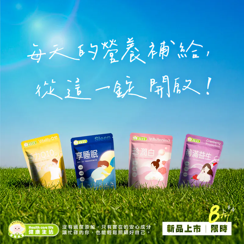 以純粹、安心的配方,隨手放包包也能輕鬆保養,讓健康真正成為日常。幸福米寶全新推出「健康生活系列」錠劑型保健食品,延續品牌「健康源自天然」的理念,從睡眠調理、肌膚亮白、私密保養到補充活力,打造適合全家人的日常營養補給方案。