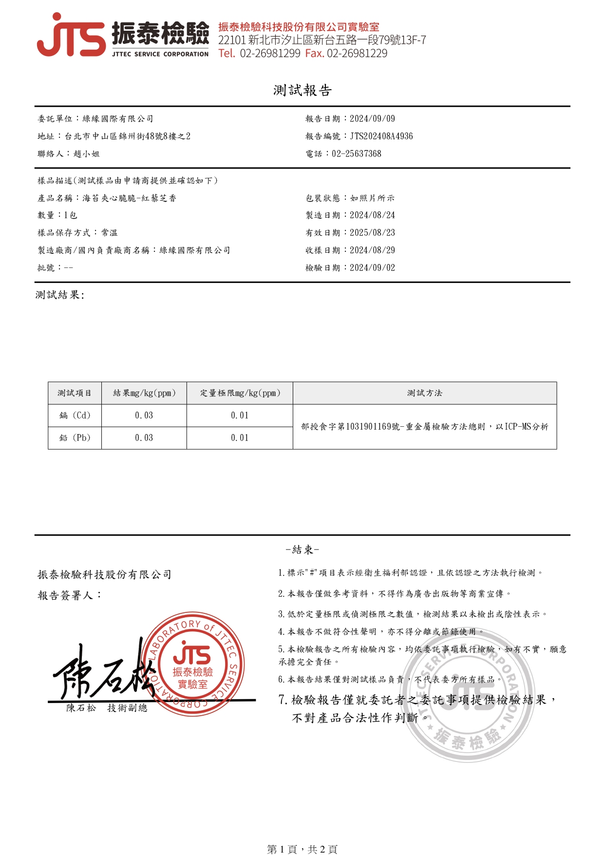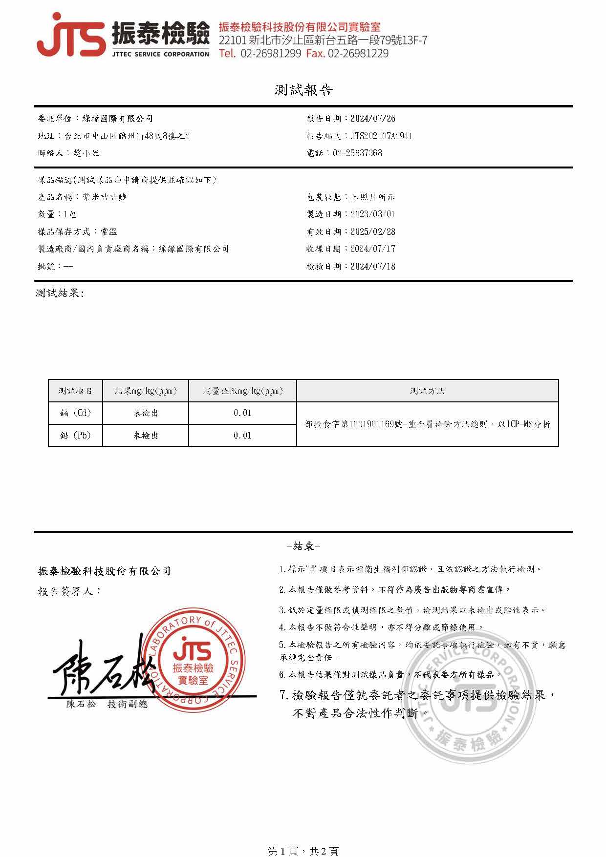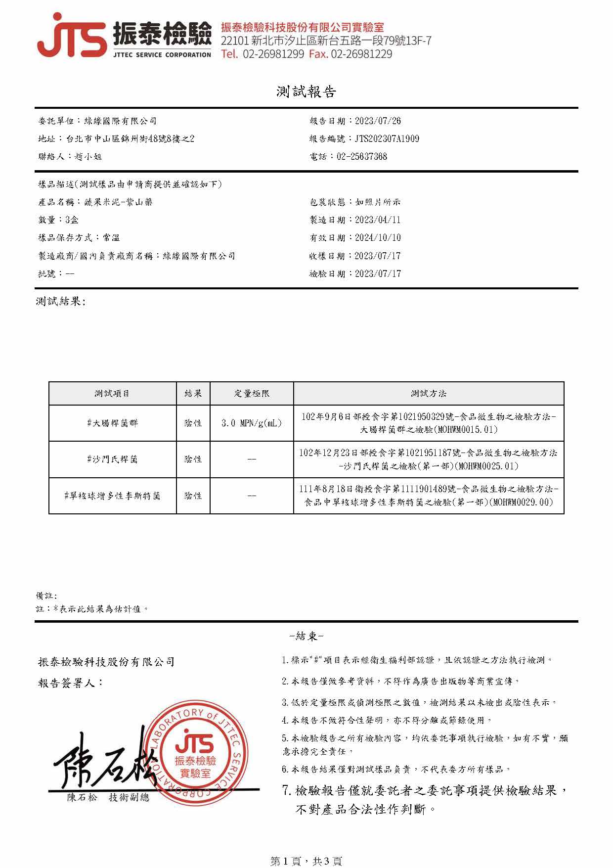 產品檢驗報告