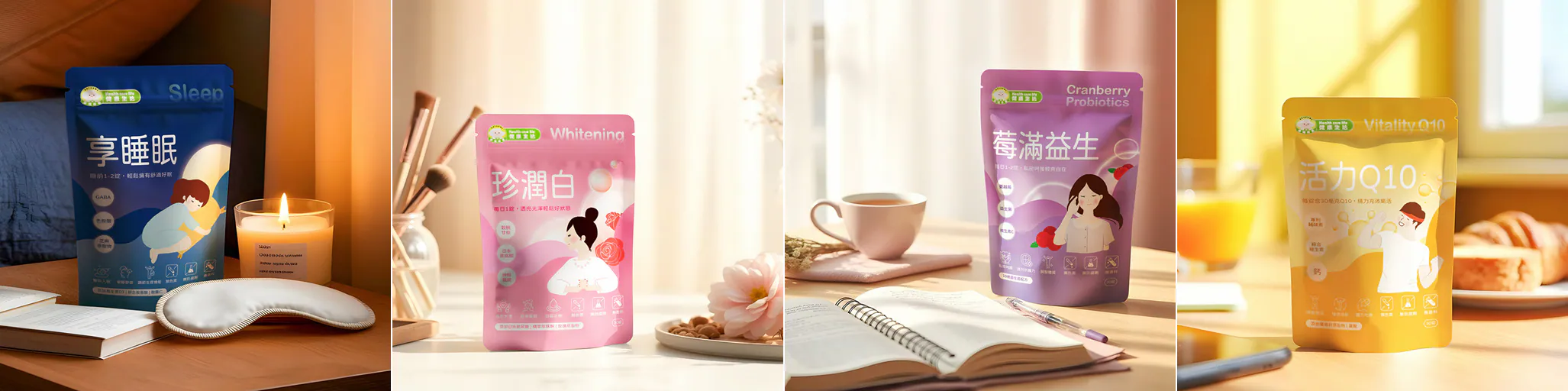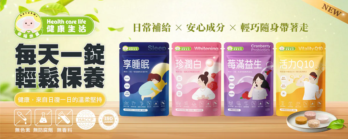 幸福米寶全新推出「健康生活系列」錠劑型保健食品,延續品牌「健康源自天然」的理念,從睡眠調理、肌膚亮白、私密保養到補充活力,打造適合全家人的日常營養補給方案。
